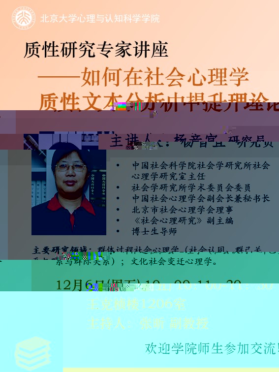 楊音宜,研究員,博士生導師,中國社會科學院社會學研究所社會心理學研究室主任,中國社會心理學會副會長兼秘書長